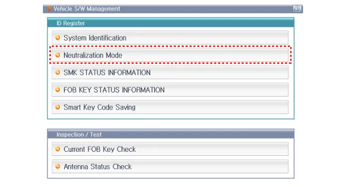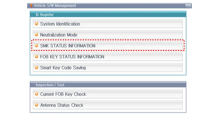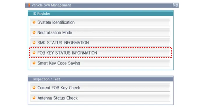 | 2. | After IG ON, select the "FOB Key Status Info".