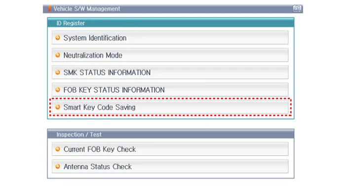 | 2. | Select the vehicle model and then do "Smart Key Code Saving".
