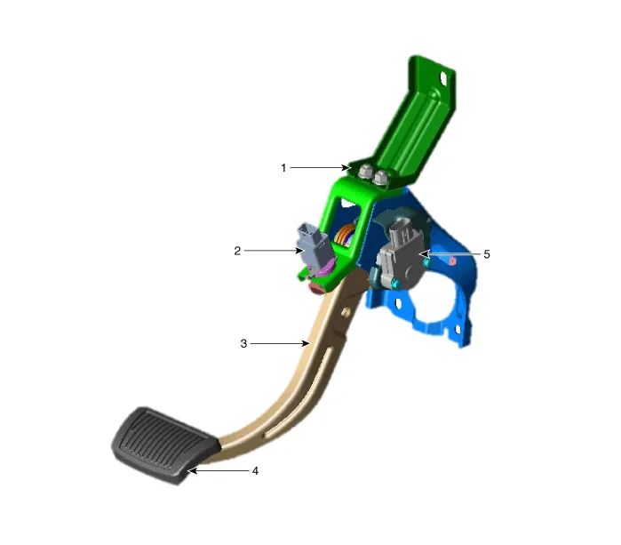 | 1. Brake pedal member assembly 2. Stop lamp switch 3. Brake pedal arm assembly | 4. Brake pedal pad 5. Pedal stroke sensor |