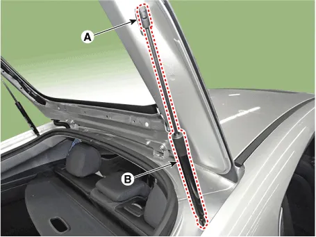 | 4. | After loosening the mounting bolts, then remove the tailgate assembly (B).