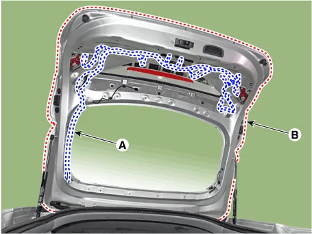 | 3. | Disconnect the connectors and tailgate wiring harness (A). |