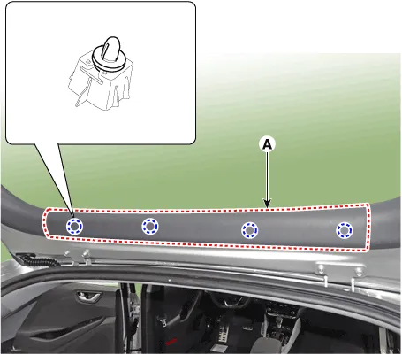 | 1. | Using a screwdriver or remover, remove the tailgate upper trim (A).
