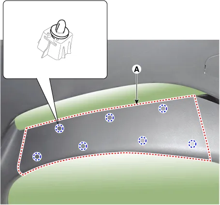 | 1. | Using a screwdriver or remover, remove the tailgate lower trim (A).