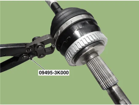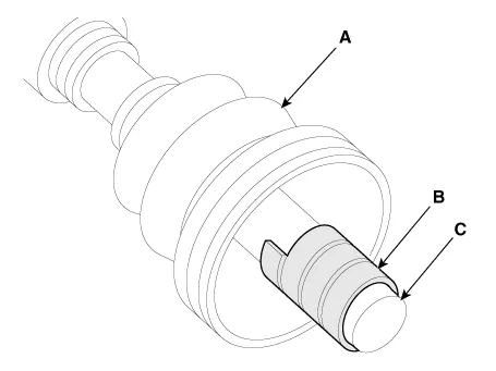| 1. | Wrap tape around the driveshaft spline(TJ) to prevent damage to the boot. |