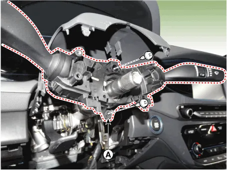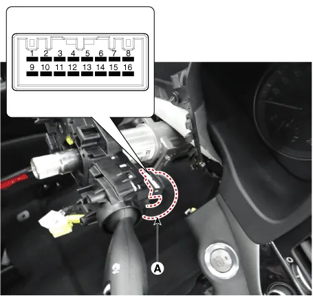 | 6. | Loosen the screws (2EA) from the multifunction switch assembly (A).