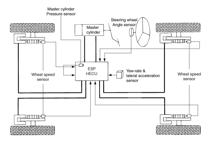 ESP essentially consists of three assemblies : the sensors, the electronic control unit and the actuators.